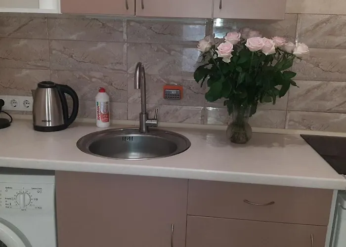 L'immeuble propose également une cuisine équipée avec un réfrigérateur et une table de cuisson. L'appartement se trouve à 950 m de l'arrêt de bus le plus proche de Prokhorovska.